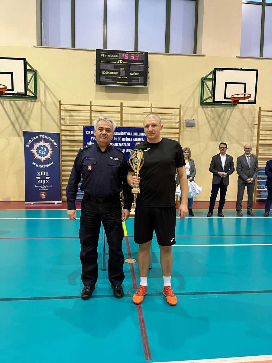 Jak co roku obiekty sportowe powiatu kraśnickiego stały się areną zmagań w piłce nożnej halowej policjantów z terenu województwa lubelskiego. Sportowa atmosfera ale też zacięta rywalizacja towarzyszyły zawodnikom do samego końca. Hale w Kraśniku i Dzierzkowicach dzięki uprzejmości gospodarzy pozwoliły wyłonić zwycięzcę, którym okazała się drużyna z Opola Lubelskiego. To zawodnicy stamtąd zdobyli też indywidualne trofea: Kamil Królowski jako najlepszy bramkarz, a Marcin Solis został Królem Strzelców. Czy łatwo było wygrać? Na pewno nie, najlepiej świadczy o tym fakt, że w finale KPP w Opolu Lubelskim wygrała dopiero w rzutach karnych z KPP w Krasnymstawie-do karnych utrzymywał się bezbramkowy remis.