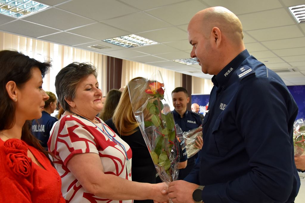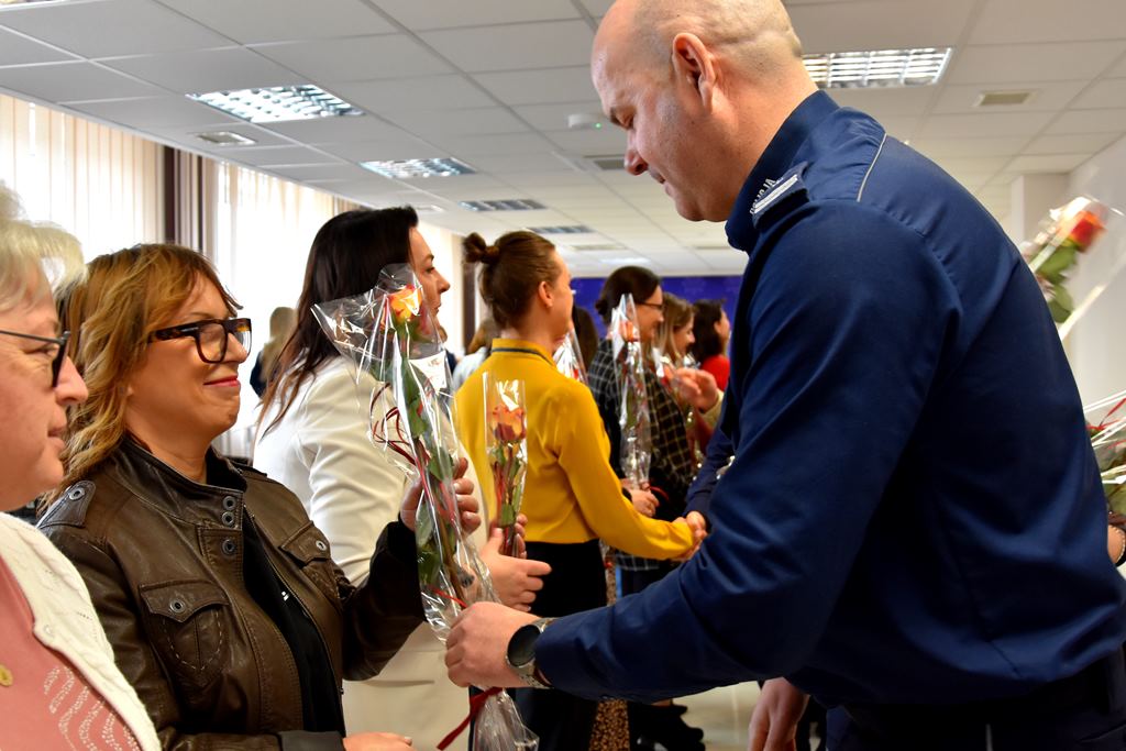 Podczas uroczystości, Komendant przekazał róże dla każdej z Pań a także zaprosił na słodki poczęstunek.