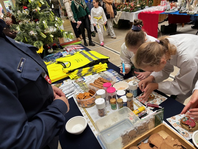 Świąteczne stoisko miało również rodzinny i integracyjny charakter. Uczestnicy mogli własnoręcznie ozdabiać przygotowane wcześniej pierniki, poczęstować się słodkościami oraz wykonać pamiątkowe zdjęcia w świątecznej scenerii. Spotkanie było okazją do bezpośrednich rozmów z Policjantami i wspólnego spędzenia czasu w ciepłej, przedświątecznej atmosferze.
