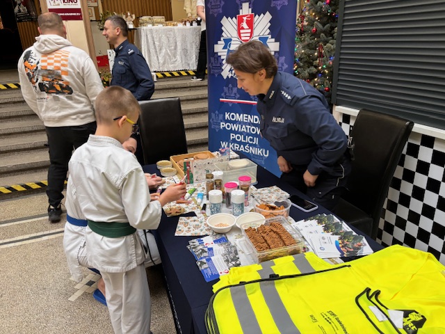 W przedświątecznym okresie Policjanci z Komendy Powiatowej Policji w Kraśniku zorganizowali świąteczne stoisko profilaktyczne w Centrum Kultury i Promocji. W wydarzeniu uczestniczył również Pierwszy Zastępca Komendanta Powiatowego Policji w Kraśniku podinspektor Przemysław Wronka.